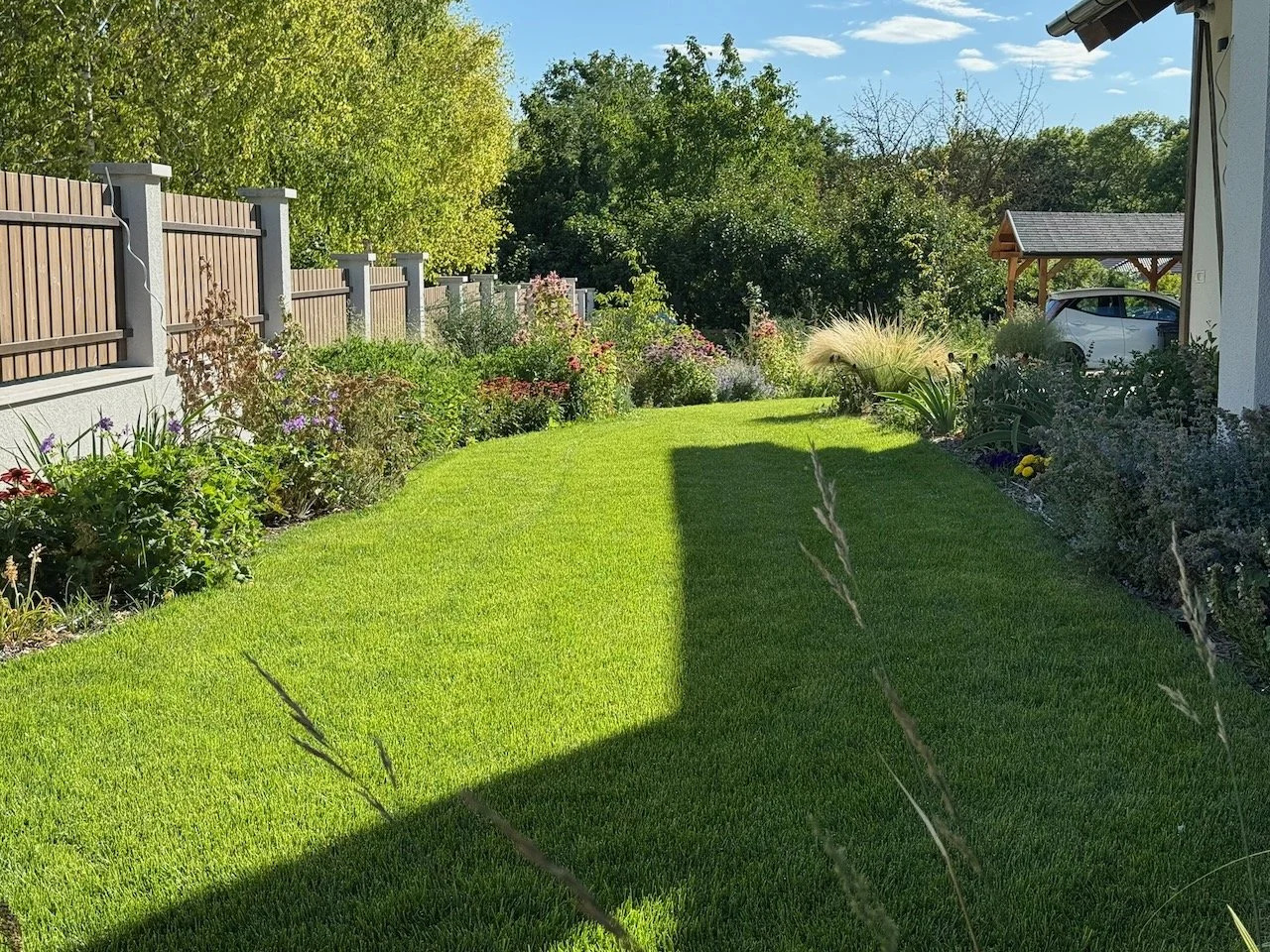 Magánkert teljes körű kerttervezés és kivitelezés, öntözőrendszer, virágos évelő kiültetés